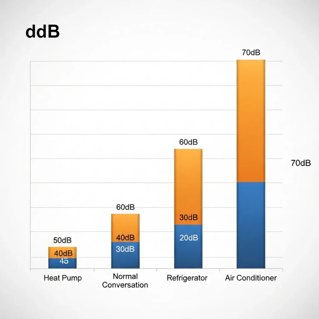 כדי להבין את גודל השינוי, חשוב לדבר במספרים. עוצמת הרעש נמדדת בדציבלים (dB). משאבת אינוורטר מודרנית פועלת באופן רציף ומשנה את תפוקתה בהתאם לצורך, ולכן רוב הזמן היא פועלת בעוצמה נמוכה ושקטה במיוחד. טכנולוגיה זו הופכת את המשאבות חימום המודרניות לאחד מפתרונות החימום השקטים ביותר הקיימים. הנה השוואה קצרה שתמחיש את ההבדלים: